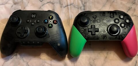 ニンテンドースイッチの純正コントローラー「Proコントローラー」との比較です。